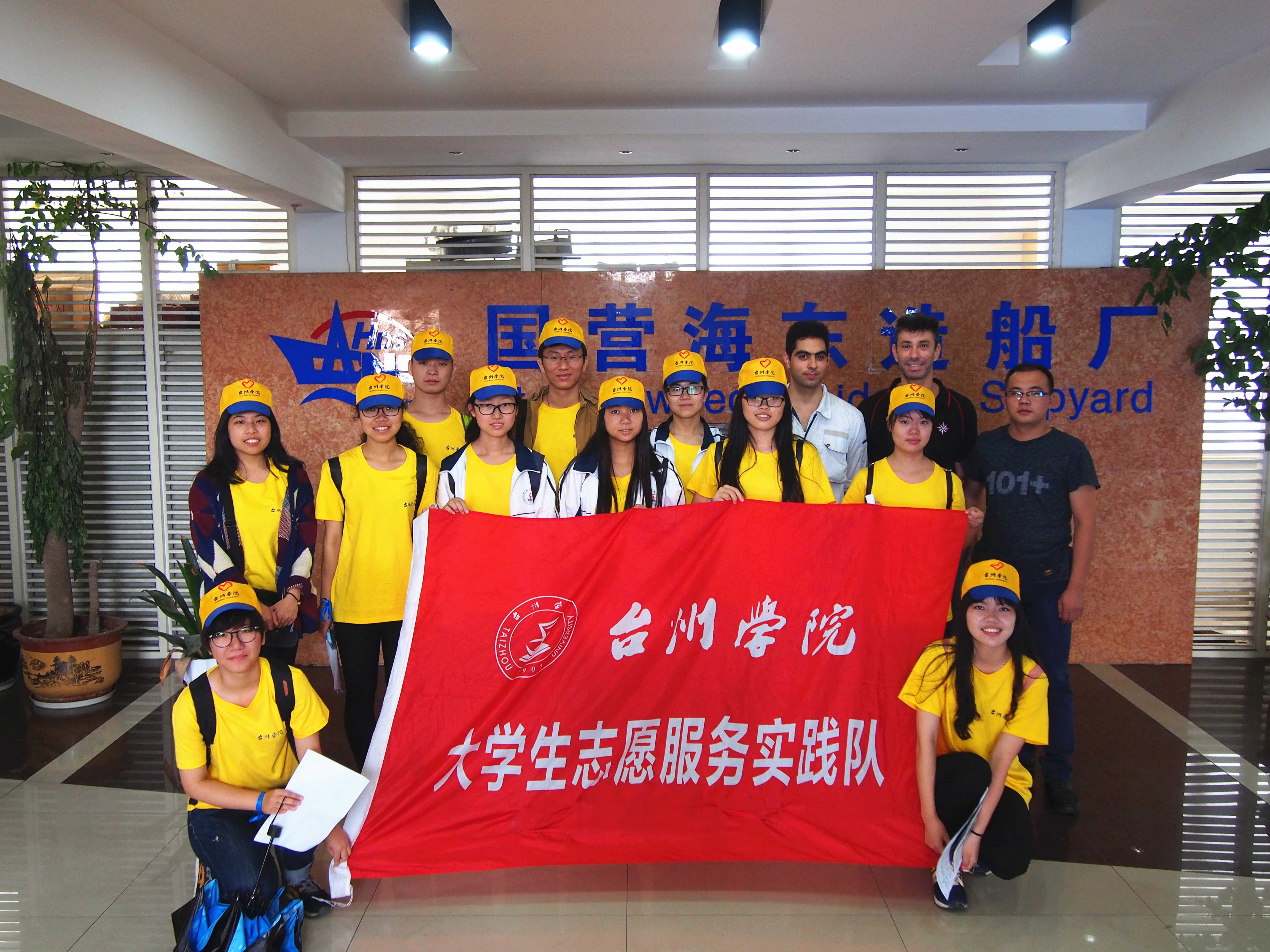7月7日,K1体育“海洋之心”暑期社会实践队来到国营海东造船厂了解海洋轮船的制造,希腊工程师阿瑞斯和他的同事带领实践队员参观,并介绍造船知识。