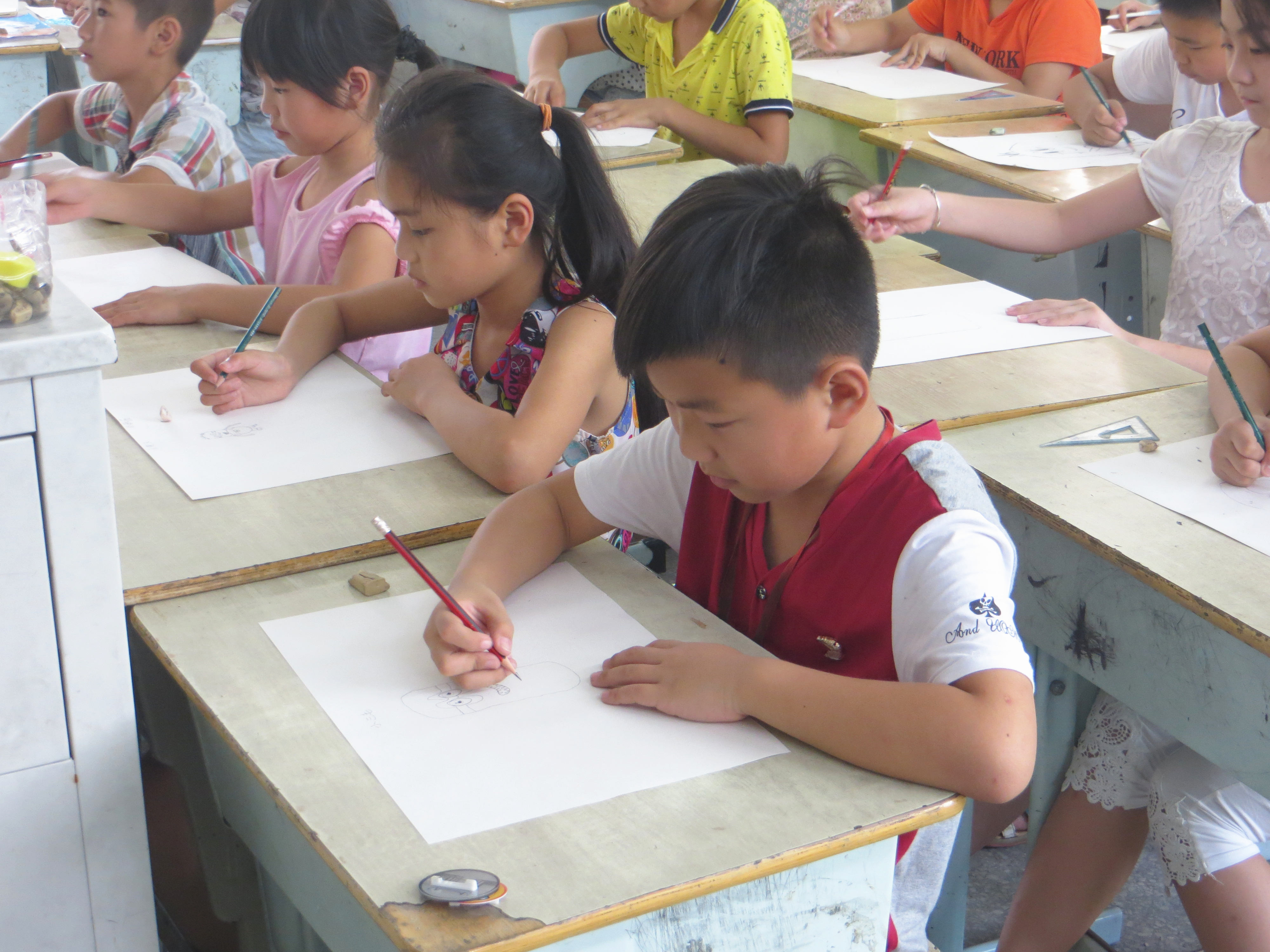 7月14日,K1体育“知心支教”暑期社会实践队开展支教活动第二天,实践队员为东山小学的孩子们开展了别具一格的美术特色课程和经典名著赏析课程。