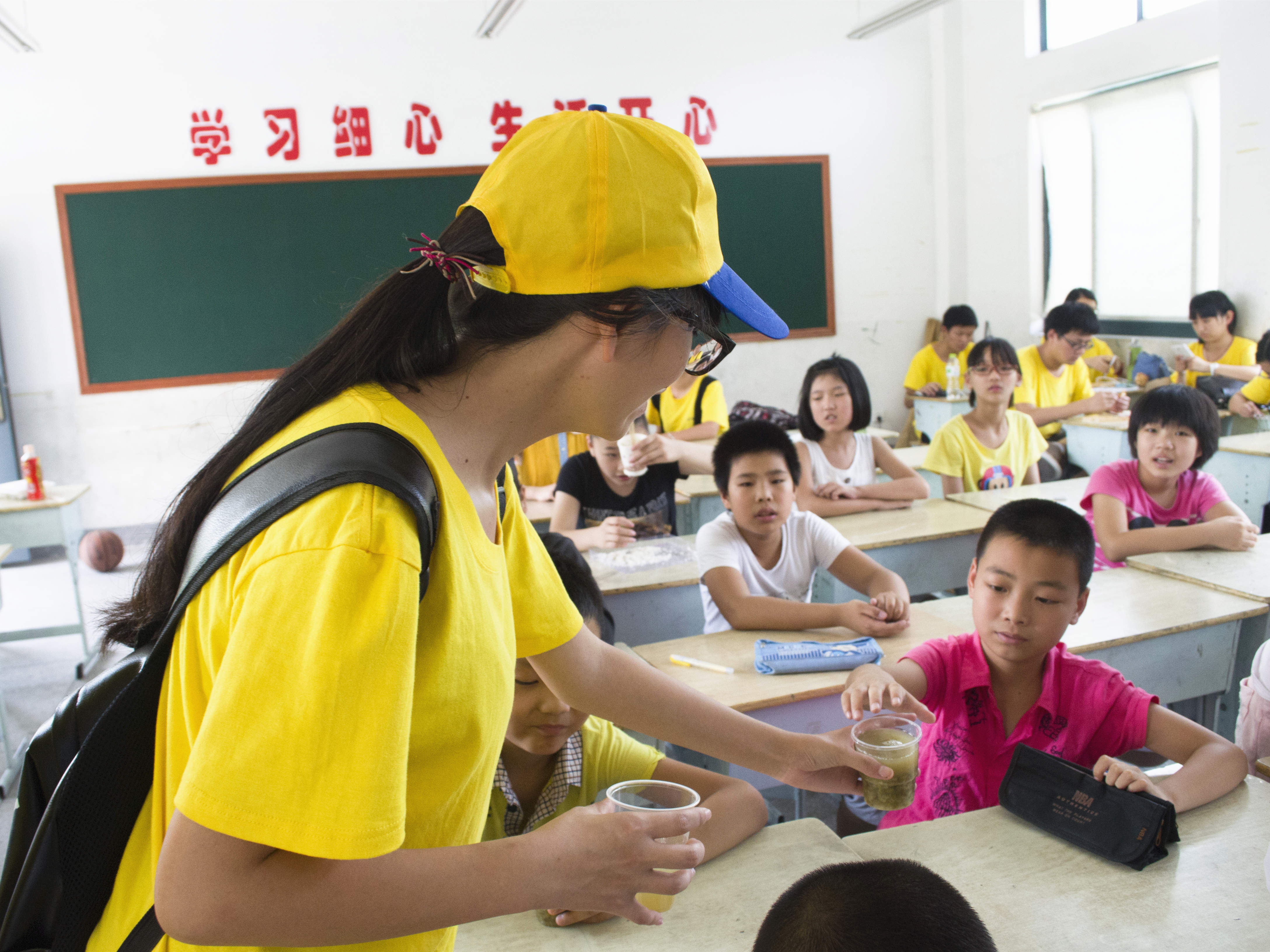 当天早上,实践队员来到了东山头村,与村里面农民工子弟进行了一场互动游戏,小朋友们蹦着跳着来到游戏场地,与实践队员们一起玩了夺宝奇兵系列游戏。虽然当天上午天气有些炎热,但是小朋友们快乐的笑声像一阵阵微风吹在每个人的身上。下午,实践队员将早上煮好的绿豆汤运到东山头村老人活动中心,在炎炎夏日为老人们送上一份清凉和一份关怀。当日,诸多老人在活动中心拿到实践队送上的绿豆汤,就连上午参加游戏的小朋友们也过来帮忙分发绿豆汤。老人们的一句句谢谢,一张张笑脸成了这个小村庄最美的风景。随后,“阳光边检”暑期社会实践队还来到东山中心小学,与“知心支教”暑期社会实践队的队员们一起向小朋友们分发了绿豆汤。