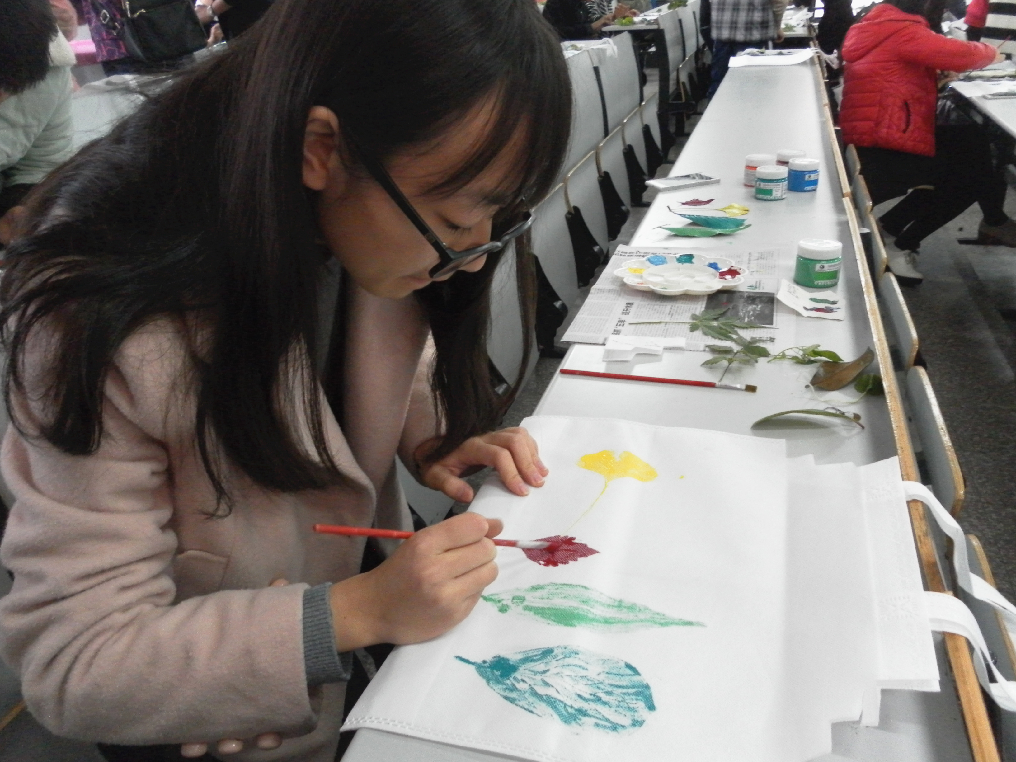 比赛开始后,选手们纷纷从比赛场地出发,根据抽签纸条与微信公众平台中的提示,寻找相应植物,30分钟内,选手们陆续带着叶子归来。随后进行的为时90分钟的布袋制作更是充满了乐趣与想象力。规定时间后,各小组派代表上台对布袋制作的主题与寓意进行简短讲解。评委们分别从外观造型,现场讲解,新颖创新,牢固程度及植物数量几个方面进行评分。最终,14科教寿佳欣带领的队伍以其独具创意的设计和精彩的解说赢得评委们的一致好评获得一等奖。