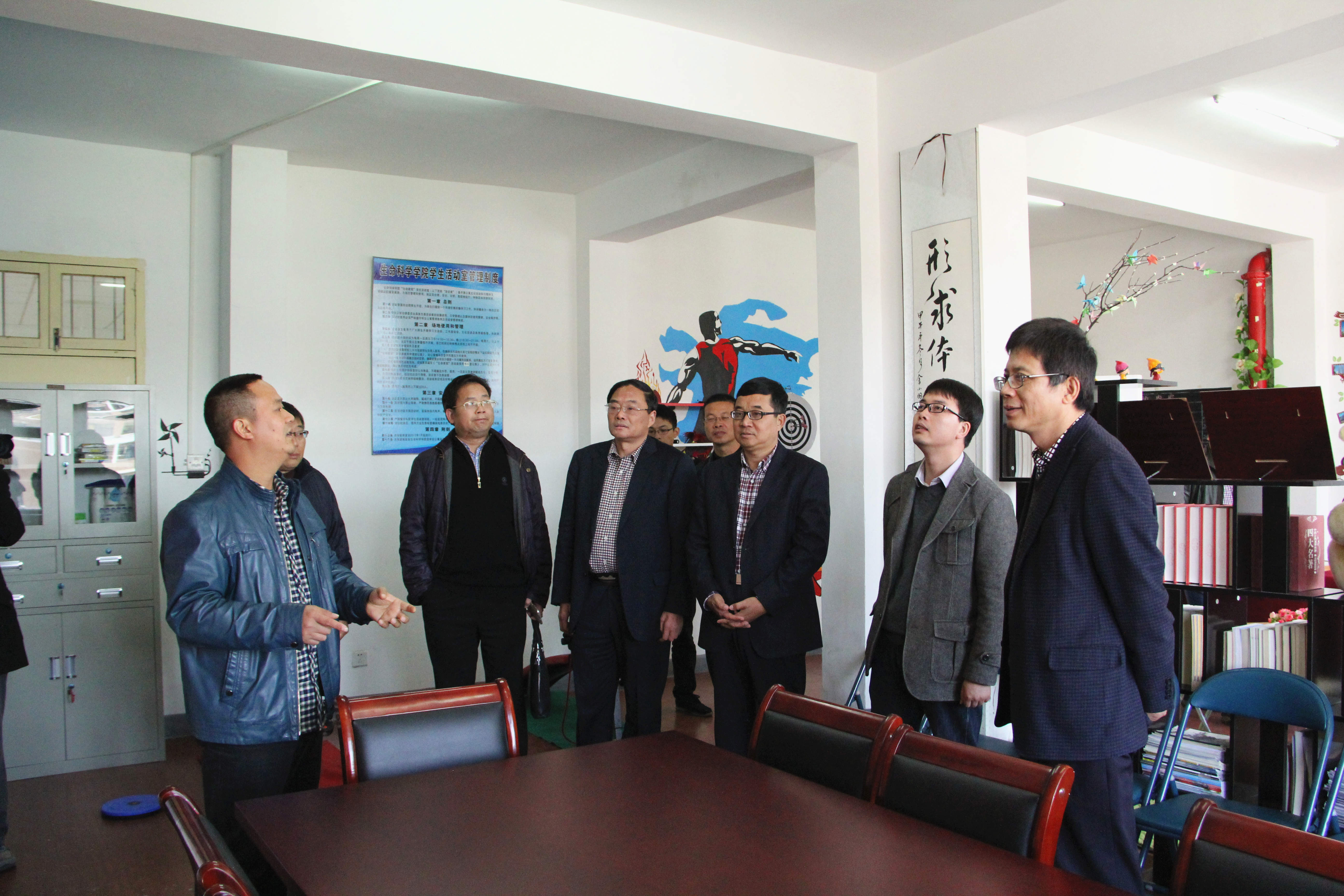 中午十一点钟半,督查组一行来到公寓10号楼,参观了辅导员公寓值班室和“生命家苑”公寓活动室,生命公司党总支副书记杨启富介绍值班室和活动室建设,公寓活动开展等情况。公寓活动室具有中国梦和核心价值观主题的会议室,吸引了督查组的注意,与陪同人员进行交流。督察组还向辅导员了解公寓值班制度,公寓值班的工作开展情况。对辅导员进公寓表示了肯定,希望加强思想政治进公寓的实效性。