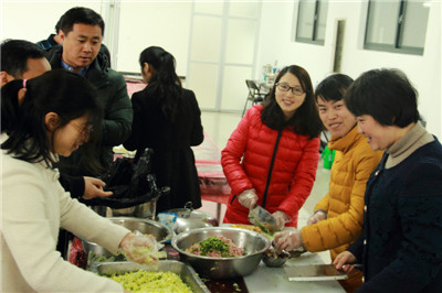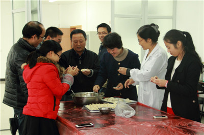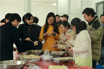 当天中午,活动现场一派热闹景象,大家踊跃参加,兴致勃勃,各显其才,揉面的揉面,拌馅的拌馅,忙地不亦乐乎。饺子要包的好,重点是最后的饺子边要捏得均匀,形状好看,同时不露馅。汤圆要包的好,也在皮子上,首先要取适量的面团,搓圆,抠个洞,从底部开始将皮捏均匀,放入馅料,把口包好,然后搓圆,一个汤圆就完成了。在公司工会副主席马勇军老师的指导下,大家都包的有模有样。大家一边包,一边交流“经验”,在大家的共同努力下,一个个汤圆、饺子逐渐成型。在一片欢声笑语中,包含着幸福和温暖的饺子和汤圆就出锅了,大家吃着热气腾腾的饺子和汤圆,脸上洋溢着幸福欢乐的笑容。