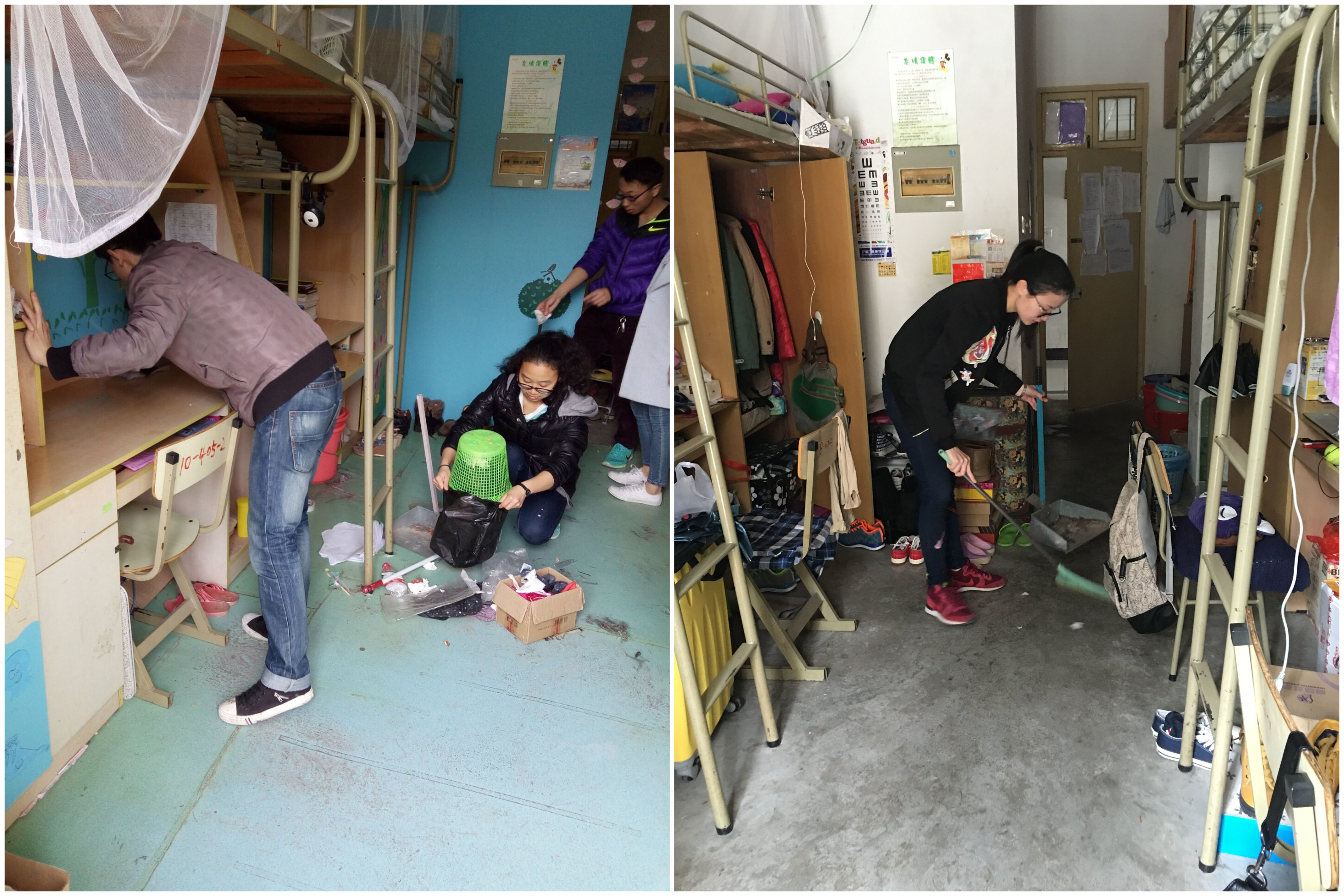各专业员工党员分别对所在专业的毕业班员工寝室,以及卫生不合格寝室进行彻底大扫除,清洗水槽、清扫垃圾、整理杂物等,同时对宿舍内的插座使用、阳台堆积可燃杂物、卫生间安全用电、违章电器等可能存在的安全隐患进行排查。经过两个多小时的辛勤劳动,共清扫了80多间寝室,各寝室清扫前后是天壤之别。