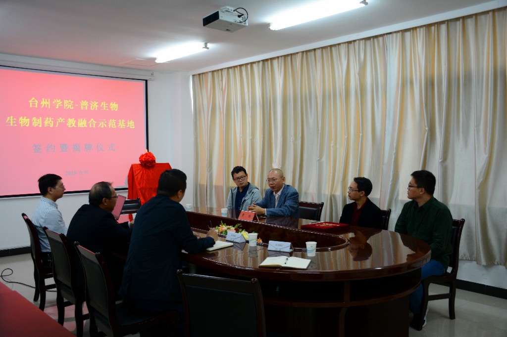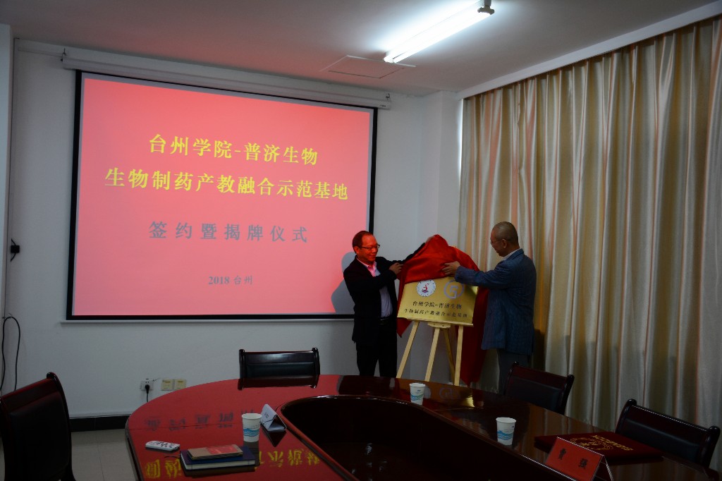 10月31日上午,普济生物科技(台州)有限公司与公司举行“K1体育-普济生物制药产教融合示范基地”项目签约揭牌仪式,普济生物科技(台州)有限公司总经理贾强、公司党总支书记柯世省和相关专业教师出席仪式。