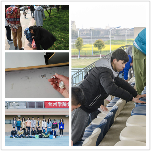 在文明修身专题教育实践活动期间,公司号召全院各团支部参与志愿服务活动,全院共15个团支部分别到校内外开展志愿服务,用自己的实际行动美化校园,为师生、市民免费服务,提供便利。在校内,有清理教室涂鸦的;有打扫运动场看台的和实验室的;14生物教育团支部在平安校园建设期间协助保卫处进行了为期两周的车辆秩序维持;15环境工程团支部还用清扫校内落叶,并制作了树叶画,用创意的方式提倡环保。在校外,部分团支部到星星广场、白云阁、市民广场等地清理垃圾,疏导交通;14科学教育团支部到东山小学开展了为期两个月的义务支教活动。生命学子用实际行动宣传文明,传递正能量。