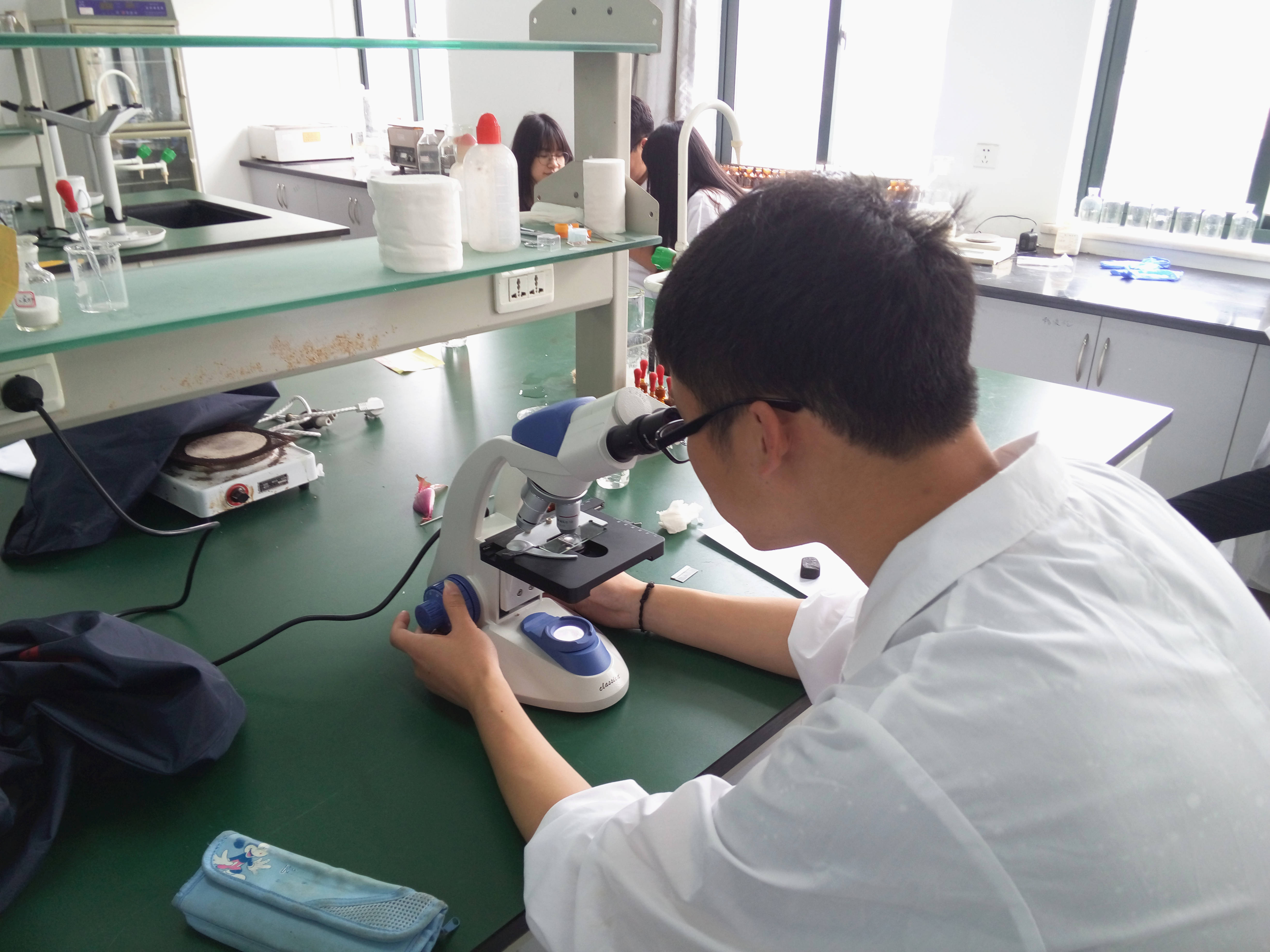 初赛考核显微镜使用和实验室注意事项等理论知识,最终12位成绩优秀的选手进入决赛。决赛现场,12名选手分为三组进行比赛。本次比赛选手需要用洋葱为材料,分离洋葱表皮,制作洋葱表皮装片,显微镜下观察洋葱表皮细胞形态,并绘制视野所见内容,安静的实验室进行着一场激烈的对决。公司植物学专家陈模舜老师担任本次大赛评委,老师认真观察选手们的操作是否规范,评分时指出选手的问题,告诉同学们细节决定成败。最终,15科学教育专业王颖同学以规范的操作,标准的装片和完美的绘图摘得桂冠;