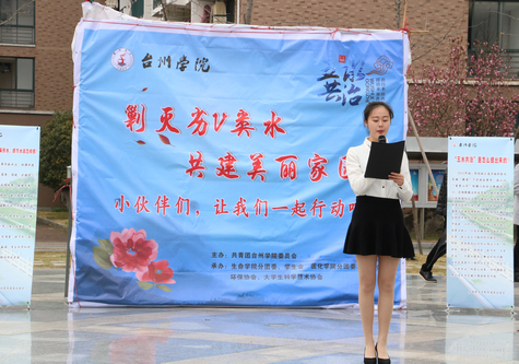 活动伊始,“五水共治”行动志愿者宣读《全校团员青年参与“五水共治”倡议书》,倡议全校员工争做“剿灭劣Ⅴ类水”的宣传者,利用校园广播、微信公众号等阵地普及“五水共治”知识,积极营造“剿灭劣Ⅴ类水”的社会氛围;争做“剿灭劣Ⅴ类水”的践行者和志愿者,以校内或校园周边河道为主要巡护对象,组织配合开展河岸清洁、河道监督、水质监测等志愿服务工作,力争巡护河段实现水中无障碍物、水面无漂浮物、水边无垃圾的目标;发挥专业优势,组成科技治水服务队,协助解决治水技术难题、参与河岸美化工程,以智力和科技服务助力各地推进剿灭劣Ⅴ类水行动。