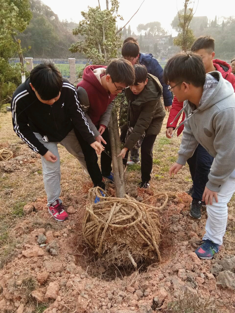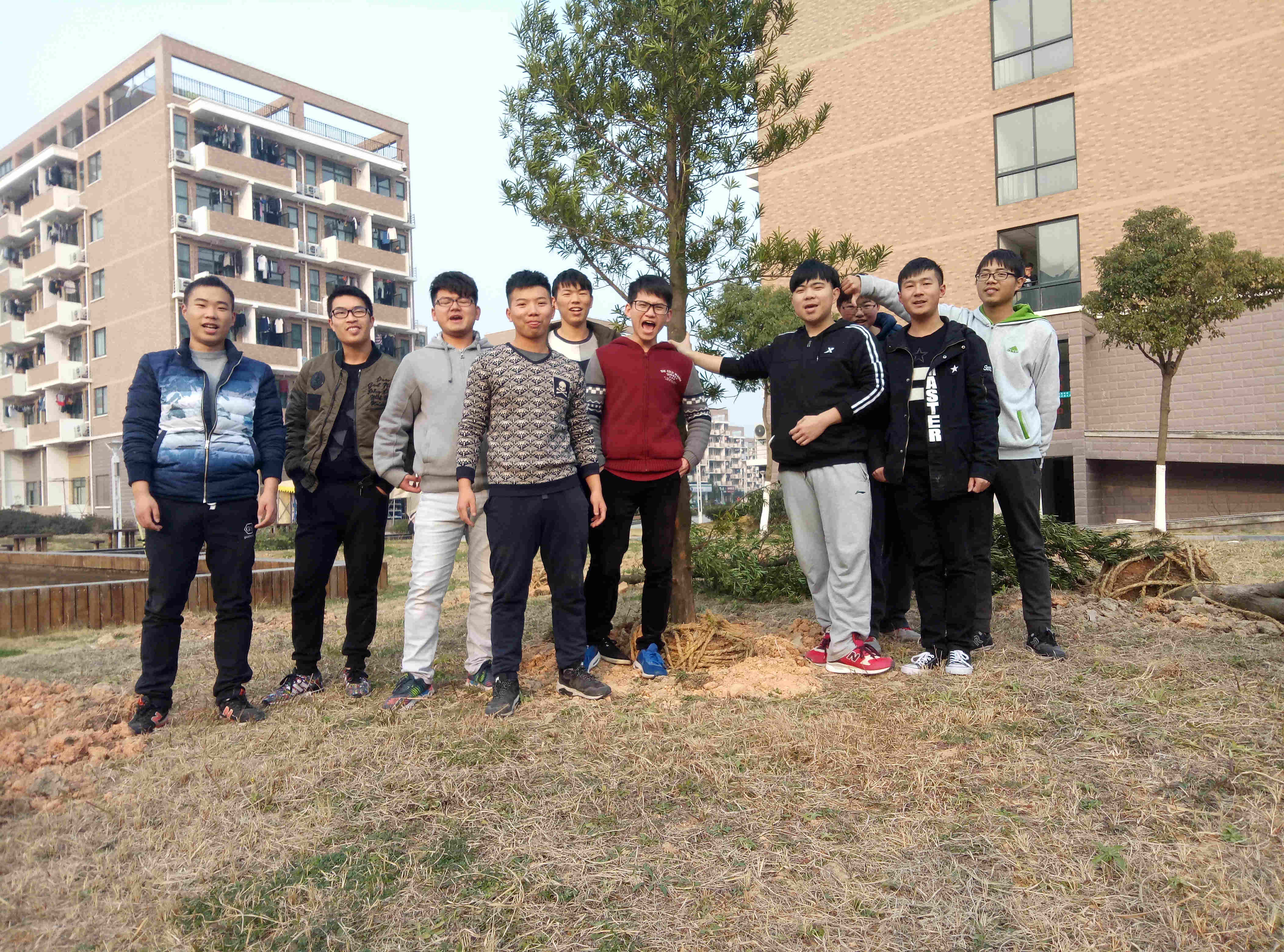 下午两点半同学们在12号楼楼下草坪处集合点到,分发树苗。随后大家有序地进行植树活动,手持铁锹和水桶,干劲十足,将一棵棵充满生机的树苗植入土里。大家看着那一自己亲手种下的树苗在微风中摇曳,无不露出幸福的笑容,并与一颗小树苗进行了合影,以此结束了本次活动。