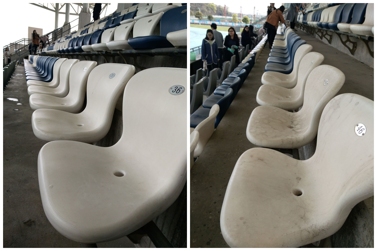 活动现场,同学们积极参与大扫除,分组打扫看台不同区域。大家分工合作,积极踊跃、不畏脏不怕累,配合默契。有捡垃圾的、有换水的、有擦座椅的。每个人都忙得不亦乐乎,清洁活动进行得火热朝天。操场上不时传出同学们愉悦的笑声。水换了一盆又一盆,白抹布也已经变成黑布,但在大家的齐心协力下,看台上的椅子干净了,地上垃圾也没有了,顺利并完满的完成了这次大扫除活动。
