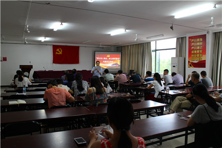 会上,潘志祥书记还传达了《中共浙江省委关于深入学习贯彻习近平总书记“7.26”重要讲话精神的通知》、《中共教育部党组关于加强新形势下高校教师党支部建设的意见》和《省委组织部关于进一步深化支部主题党日活动指导意见》等9个文件精神;同时,全体党员集体观看习近平总书记“7.26”重要讲话精神解读和黄大年同志先进事迹报告会视频。