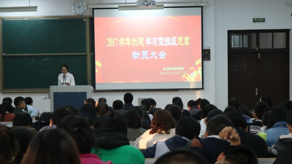 12月7日下午,生命公司在2-205教室举行2017学年创建“学习型班级”活动动员大会,公司党总支副书记杨启富、副经理孙长森出席,全体班主任、辅导员和员工干部参加会议。