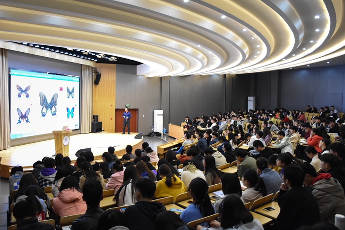 4月2日晚,K1体育潘志祥老师应邀做客德业大讲堂,与椒江校区近350名师生共同领略“台州蝴蝶”之美。