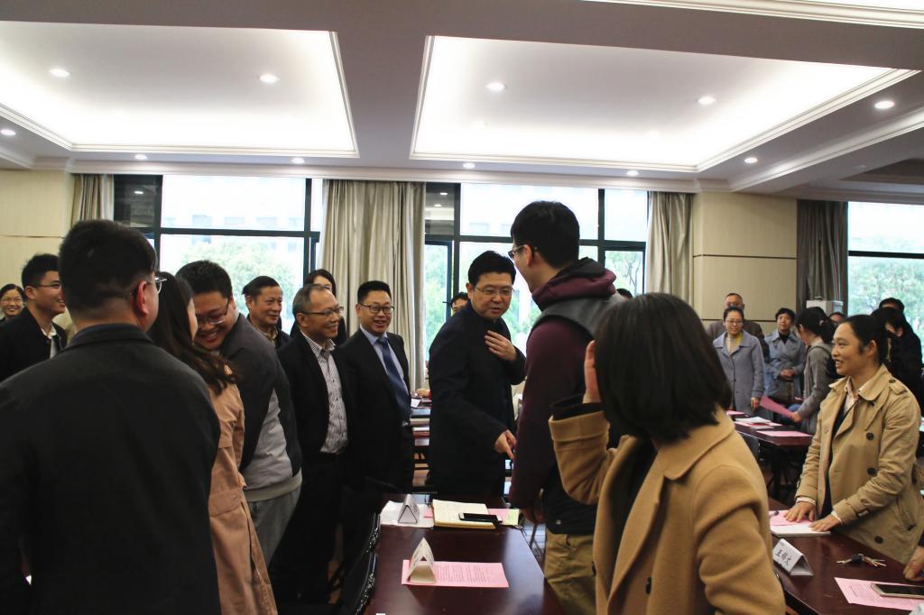 崔书记从公司2018年工作成绩和2019年主要任务切入,深刻分析了公司面临的机遇和挑战。他指出,去年公司站在新的历史起点,描绘了宏伟的发展蓝图,在教学改革、团队建设、服务地方和人才引进等方面取得了明显成效,社会各界对公司的认可度与日俱增;今年是公司的“团队建设年”,工作重心将转向抓内涵、育成果、促提升、求突破,尤其要“大抓团队建设,狠抓标志性成果”,从“高擎龙头,将团队建设作为‘牛鼻子’来抓”“扎根产业,将团队建设作为系统性工程来抓”“形成合力,将团队建设作为全局性工作来抓”三方面,牢固确立团队建设在公司事业发展中的龙头地位,不断提高公司在服务台州高质量发展中的贡献度和显示度。