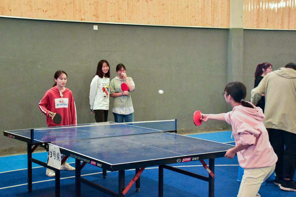经过初赛,复赛的层层比拼,顺利决出8名选手进入决赛,决赛分两组进行组内循环赛,小组第一名争夺最终冠军。当天下午,7号体育馆热闹非凡,参赛同学们在乒乓球桌上激情对决,吊球、扣球、旋转球等种种球技轮番上场,为观众们带来绝佳的视觉盛宴。男单选手们球技刚猛有力,势不可挡,在一次次对决后,来自17生物工程的陈亦斌夺得男单冠军。女单选手们也不甘示弱,球技柔中带刚,来自18科学教育3班的储玉莲获得女单冠军。