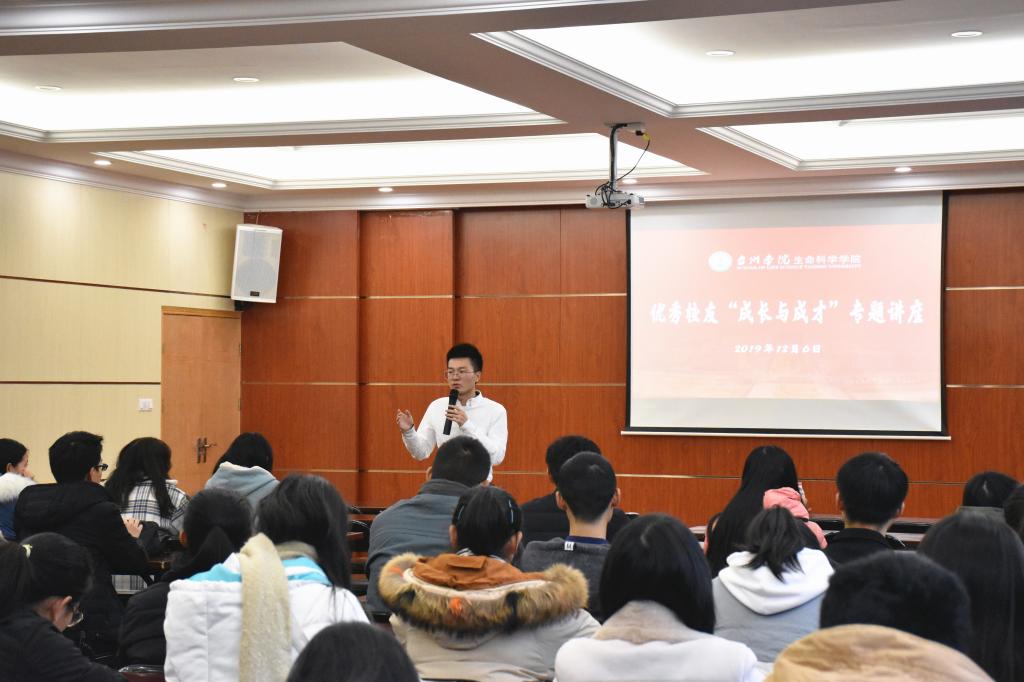 12月6日晚,公司优秀员工、兼职教授,浙江省中员工物特级教师金松涛应邀回校,为生命公司300余名师范生作“如何成就一名好老师”专题讲座。公司党总支书记柯世省主持讲座。