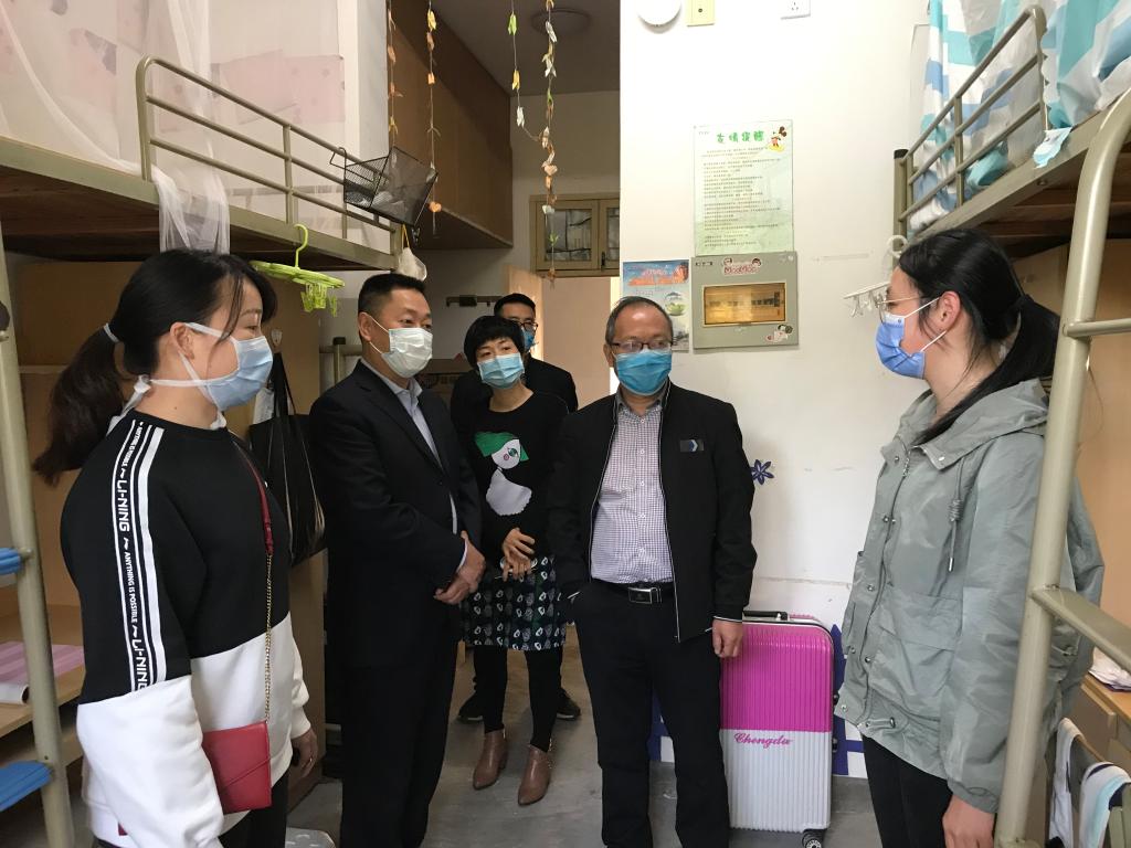 在寝室走访中,柯世省和杨万勤向同学们表达了殷切关心,询问大家假期生活和返校途中的情况,关切大家的毕业论文和工作落实情况,温馨提醒每一位员工做好个人防护,要做到勤洗手、多通风、常锻炼。员工们对公司领导及老师们的关心和慰问表示衷心的感谢,真诚地表达了自己对校园、老师和同学们的思念,纷纷表示一定会做好个人防护、遵守公司规定。