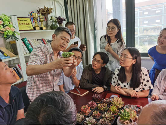 老师们对栽培多肉的环境和条件特别关心,管老师介绍完自己的种植经验后,大家便围过来虚心请教,管老师从光照、水、温等环境条件的控制、不同土壤的配比、花盆的挑选等等方面分享了自己多年培养多肉植物的经验。大家纷纷了解到一小盆多肉的栽培也是要花大量的精力,精神的倦怠、小小的偷懒都会前功尽弃。好花需要好把式,没有悉心的种植得不到令人满意的收获,作为人民教师,对员工悉心教导,孜孜不倦,才能让员工成长为合格的人才!