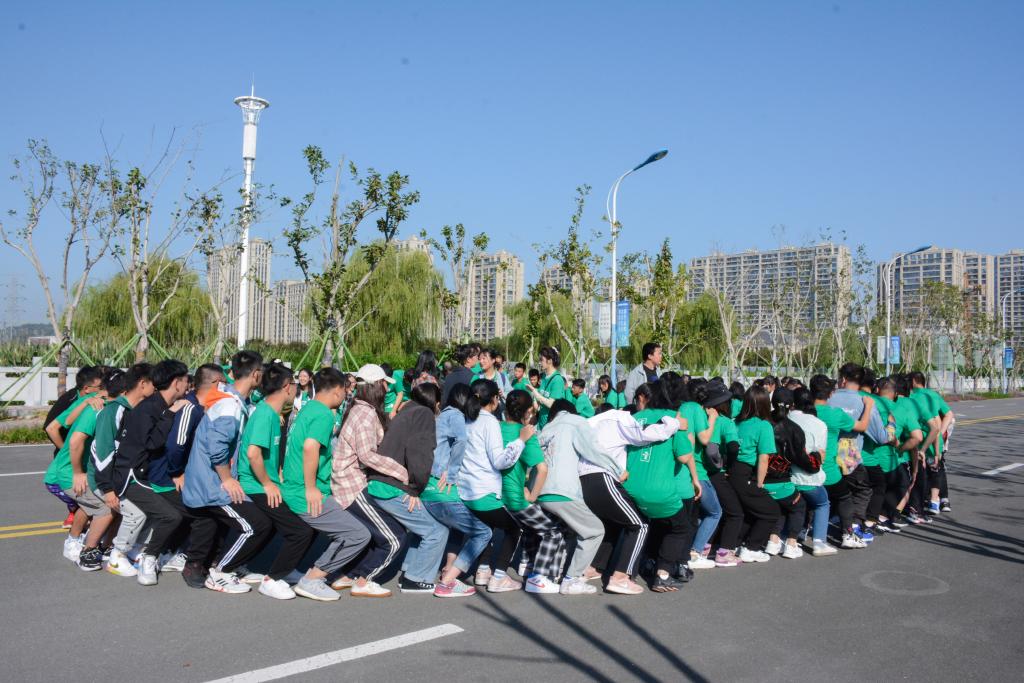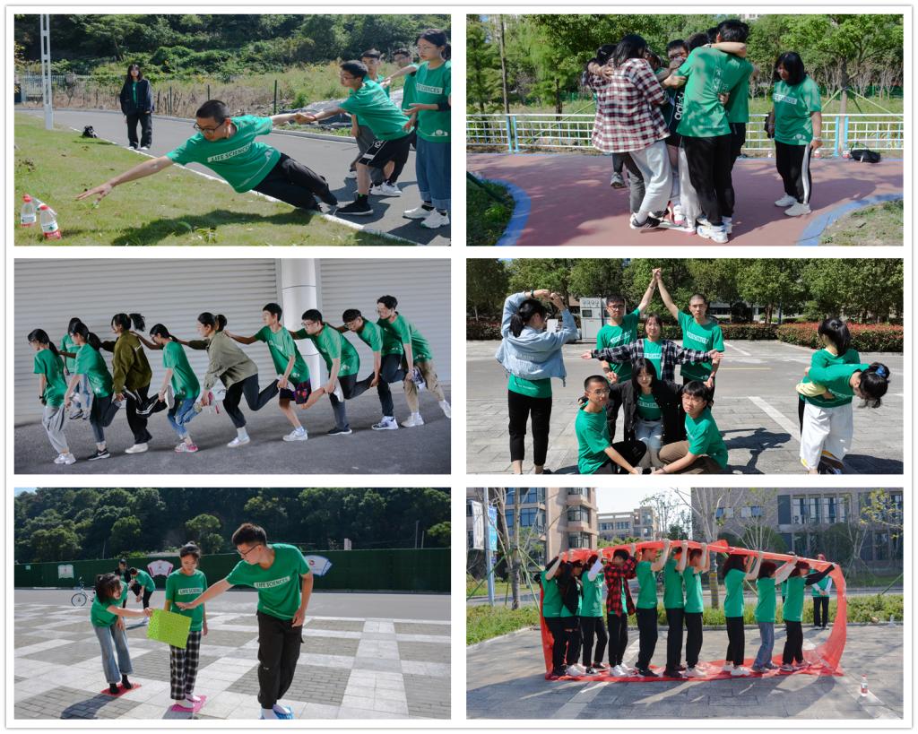 活动当天一早,迎着初升的太阳,全体成员准时在大礼堂北门集合,温煦的阳光打在他们的脸上,伴随着入秋的微微凉风,朝气蓬勃的青春气息扑面而来。一开始所有成员被分为九组,每一组的队名、口号及队歌随即诞生,组员们也都开始互相熟悉起来。素拓一开始的“人椅”热身游戏,让起初还有些拘谨的同学们逐渐找到状态融入集体,大家通过不断地尝试、调整,迎难而上、不畏艰难,最终在大家的共同努力下成功完成挑战。随后的八个游戏,也让组员之间的默契配合达到了顶峰。搭桥过河、湖边取瓶、考验了每一组的合作能力,而信任自己的队友则是合作成功的最关键之处;无敌风火轮、纸牌接力、连环呼啦圈和模拟动作都对每一组队员的沟通与交流能力提出了巨大的考验,良好的沟通能精确地向队友传达你的见解从而取得胜利;单脚火车跑则考验了全组队员的协调能力,将组内成员的各自优势发挥到极致才是成功的关键。每一组的成员都来自不同部门,大家从一开始的不熟悉,到最后成为共同进退的“战友”,在活动中相互帮助、相助扶持,提升团队精神,凝聚团队智慧,深刻体会1+1>2的团队效应。