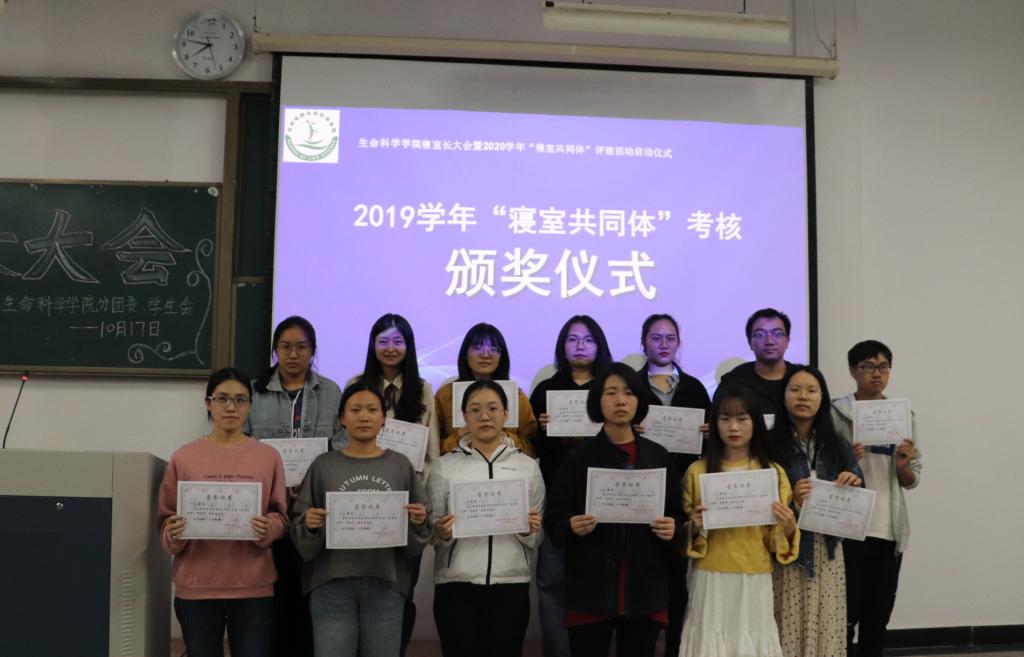 张晓介绍了“寝室共同体”评建活动考核办法和“寝室共同体”安全自查日报告、周报告单的具体要求。同时,颁发了2019学年“寝室共同体”寝室考核优秀的证书。