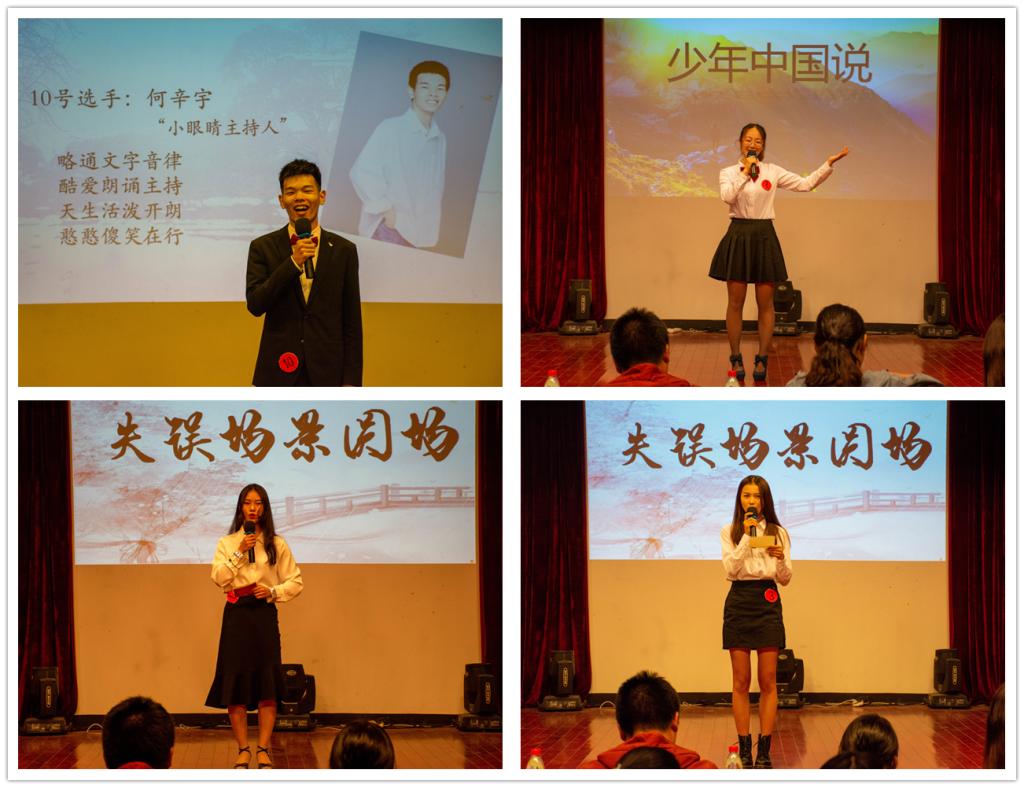 经过初赛的层层选拔,共有10名选手脱颖而出闯入决赛。决赛分为两轮晋级:第一轮的比赛内容为自我介绍、才艺展示和即兴演讲,第二轮是模拟主持。在自我介绍和才艺展示中,激情澎湃的诗歌朗诵、活力四射的舞蹈表演、悦耳动听的歌曲演唱……选手们在舞台上自信展示自身独特魅力,观众们全神贯注,现场掌声和欢呼声不断。在即兴演讲环节,选手们根据抽签的题目上台进行演讲或失误情景圆场,这不仅考验选手们的表达能力和临场应变能力,更是对选手们心理素质的极大锻炼。在第二轮“我的节目”模拟主持中,有的选手还原了“朗诵者”现场,有的选手表达了对于如今“拼单名媛”的看法,有的选手给观众们讲述“今日关注”……选手们风格迥异、脑洞大开、各显神通。