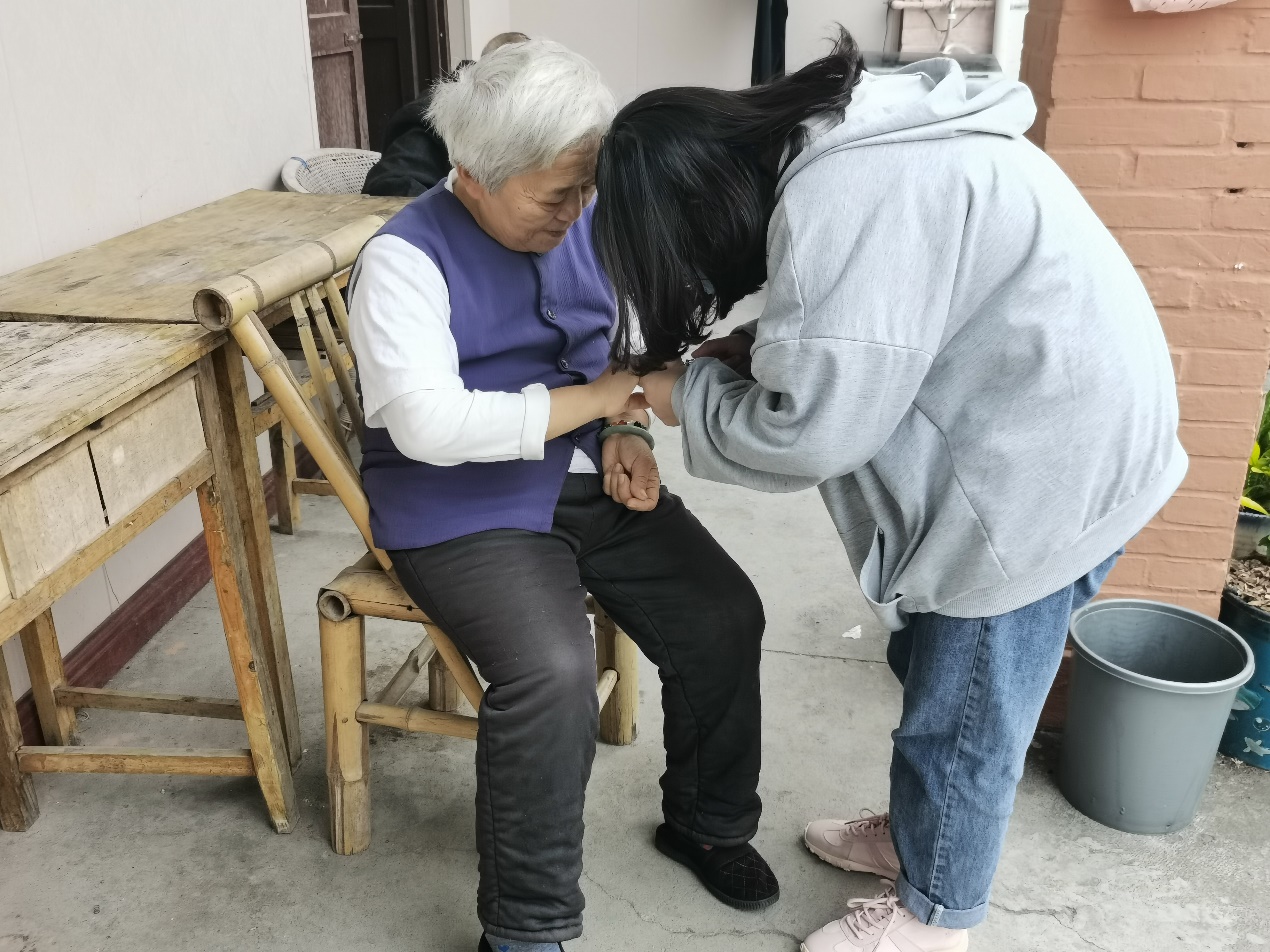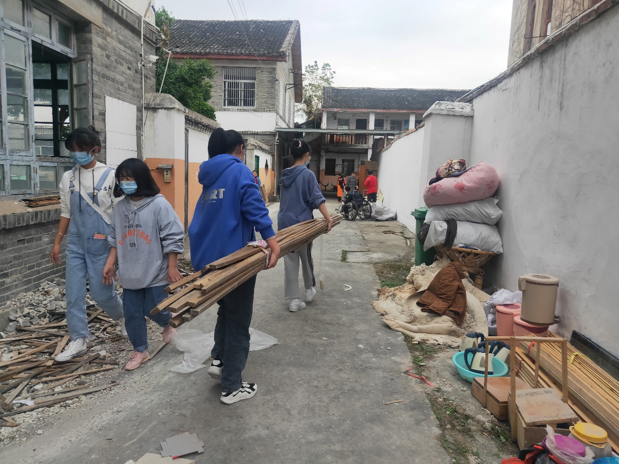 到达康平托老院后,同学们为老人送上新鲜的水果,有些老人手脚不便,同学们则贴心地剥好果皮放到老人的桌前,看着爷爷奶奶们脸上灿烂的笑容,同学们的心里是暖暖的。大家走进屋内,围坐在因行动不便独自在室内的老人们,陪他们谈天说地,为他们排忧解闷;有的同学了解到老人们喜爱下棋,便出现了一老一少棋盘厮杀的精彩画面。当天正值托老院装修,同学们主动帮助搬除杂物,我们的女生也毫不示弱,两人一组搬运起重物。额头的汗珠倒映着老人们的笑容,在阳光下显得格外的熠熠生辉。
