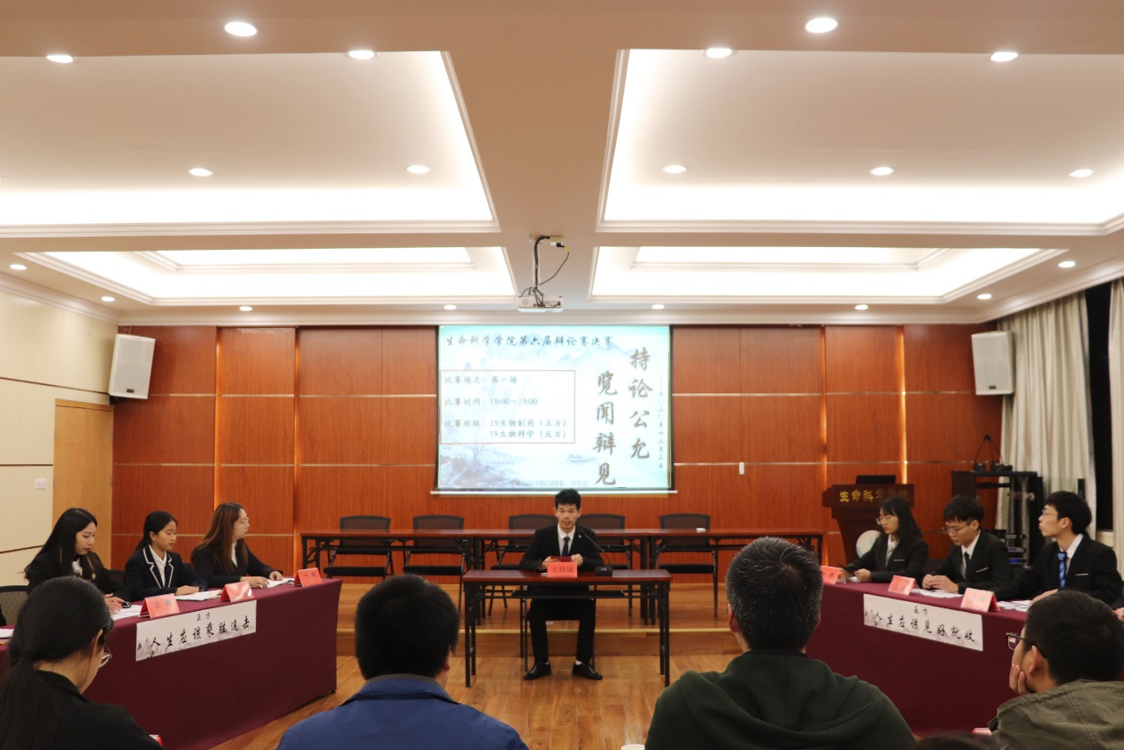 本次决赛的辩题是“人生当见好就收还是乘胜追击?”,双方一辩从人生价值的看法和见好就收、乘胜追击的定义等方面切入,明确地表达己方的观点。在随后的攻辩环节中,双方二辩、三辩紧抓对方陈词漏洞,直击要害,再一次论证己方的观点。激烈的自由辩论环节燃爆全场,正反双方针锋相对、步步为营,寻找对方逻辑漏洞,加固自身防线,妙语连珠的问答让现场的观众惊叹不已。在一番你来我往、唇枪舌剑过后,由双方四辩进行总结陈词,再次巩固己方观点。在辩论赛后的点评环节中,评委们对各队整体表现进行了深刻剖析,肯定了双方辩手的精彩表现,同时也提出了可以改进的不足之处,最后,尤灵敏对本次比赛进行总结,发表对“人生”的看法,加深同学们对辩题的理解,引导同学们在平时的学习生活中学会独立、深入地思考社会现象背后的本质问题。根据评委们的评审打分,最终19生物科学夺得本次辩论赛的冠军,19生物制药获得亚军。