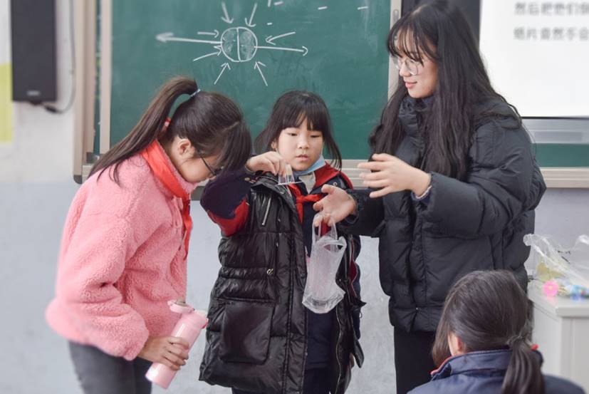 活动前期,公司团学会志愿者服务中心采取模拟上课及课堂突发情况处理的方式,对报名的200多名志愿者进行面试选拔,最终34位名愿者参与本次义教活动。在正式上课前,志愿者们在东山中心小学的阶梯教室里进行短暂的培训,并领取上课所需的实验器材和小礼品。随着前一节下课铃的响起,大家来到自己对应的班级,按照事先准备好的教案以及ppt,开始了紧张但有意义的一次教学。讲课内容紧紧围绕着科学知识,课堂氛围十分活跃,孩子们踊跃举手、积极发言,志愿者们真真切切地感受到孩子们在被老师关注提问时的那份欣喜,他们的纯真无邪深深感染了志愿者们。“小老师”们在讲授他们人生第一课时也是干劲十足,在黑板上端正书写板书,使用PPt引导着孩子们理解知识点,可谓是有模有样的小老师。下课后孩子们纷纷表示,今天的课程内容丰富有趣,既增长了知识,也培养了对自然科学的学习兴趣。