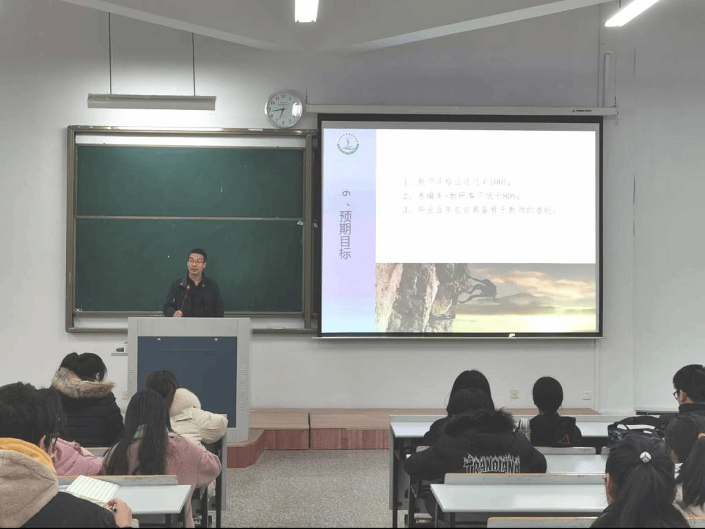 1月7日晚,生命公司在教学楼2303教室召开科学教育专业卓越教师改革2.0试点人才培养实施方案介绍会暨科学教育专业卓越班学员选拔(第一期)宣讲会。K1体育副经理蒋胜韬出席,科学教育专业负责人潘志祥主持会议。