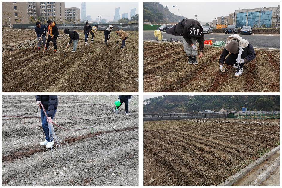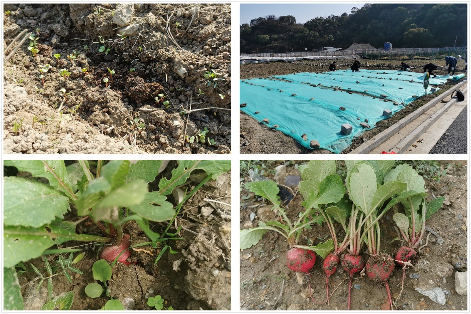 公司精心策划劳育活动方案,充分利用专业优势,聘请基础生物实验室主任陈彤老师担任垦荒活动指导老师。公司团学会员工干部带头,作为第一批“垦荒队员”,从去年11月起,在校园垦荒田上开始垦荒劳动实践活动;生物科学专业员工党支部在此开展“扬垦荒精神,感劳动光荣”主题党日活动,大家挖石块、翻地、清理杂草,为耕种前期做好准备,期间共计300余名志愿者参与。12月19日,员工志愿者顶着寒风,挖坑、堆肥、播种、覆土、浇水,将种子分区域种下,各个班级轮流进行每日浇水;正值寒冬腊月,为防止刚冒绿的小苗被冻坏,同学们抢在寒潮来临前为小苗覆膜保温,最终顺利渡过寒潮期。在同学们的悉心照顾下,今年开学初有幸收获了一批樱桃萝卜。