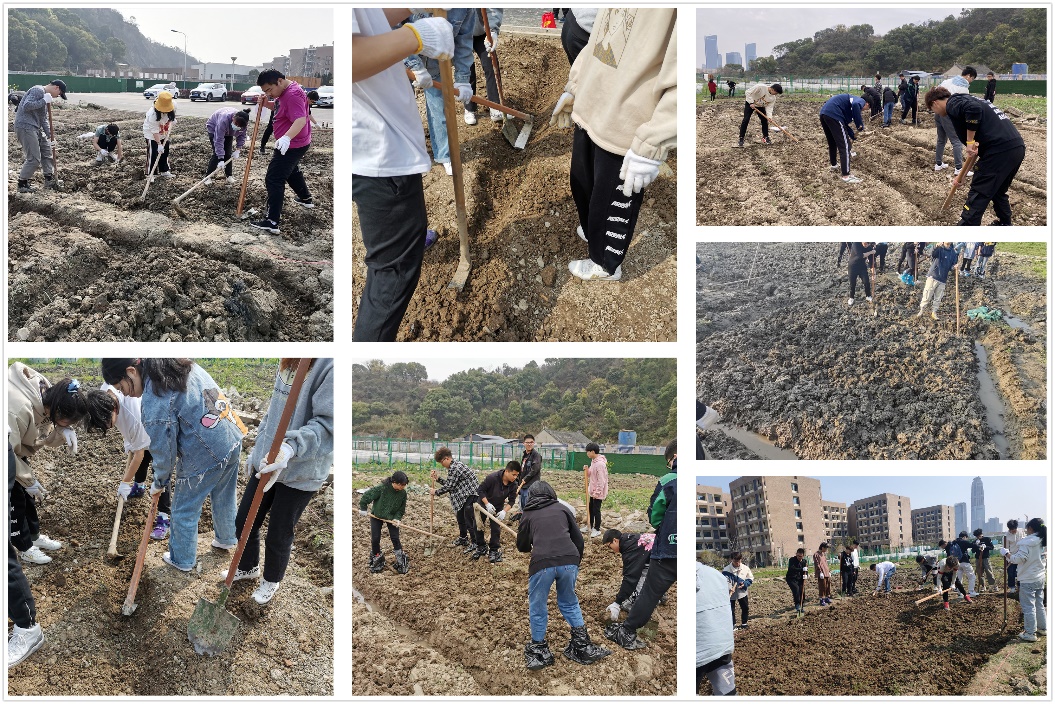 本学期开学初,遇上连续的下雨天,公司垦荒田积水成涝,一时难以耕种。为解决积水内涝问题,垦荒队员采用深挖排水沟与蓄水池结合的方式,一方面将地皮分块作垄堆高以防止积水,另一方面在地势最低处挖出一个小型蓄水池,将各地块的积水通过排水沟引流到蓄水池,减少整块地皮的积水,同时蓄水池还起到抗旱排涝的作用。为确保劳动教育全员覆盖,将地块采用“承包制”分配给各班级,由各班级包干负责一小块,各班同学在指导老师的帮助下自主种植,相互比拼。