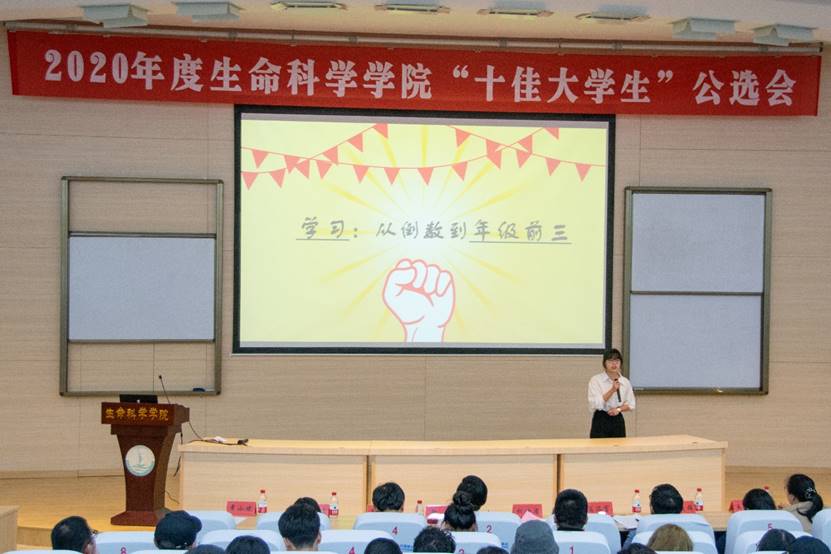 公选会前,徐敏引用习近平总书记在同各界优秀青年代表座谈时的讲话来鼓励各位候选人要充分展现自己最优秀的一面,实力展现出榜样的示范力量,感染、熏陶身边的同学。同时,也希望在座的同学能够认真听取各位候选人的事迹介绍,寻找自身与优秀朋辈间的“位势差”,努力挖掘自身的“高光点”,加强自我教育、自我管理、自我服务,提升自身思想境界。