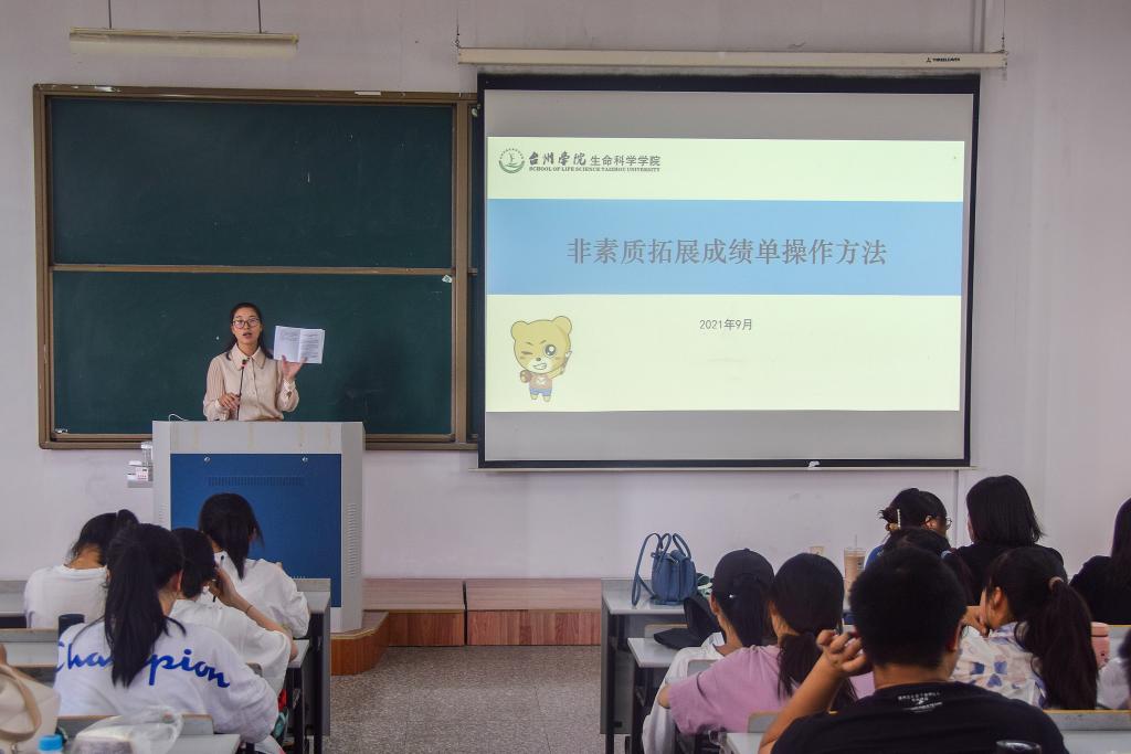 会上,王培蕾从大学学分制课程管理出发,强调了“非专业素质拓展”作为一门必修课的重要性,并对非专业素质拓展成绩单的六大模块、如何修习、积分认定标准等情况做了详细的解读,现场为新生答疑解惑。大学期间,同学们除了完成本专业学习课程外,还需要参与各类校园活动,锻炼提升自身实践能力,努力成为一名德智体美劳全面发展的新时代社会主义建设者和接班人。吴雅婷以ppt图文展示的形式,向同学们详细介绍了积分管理软件“PU口袋校园”的使用操作方法,并现场指导新生注册、认证,完善个人信息,熟悉操作界面,强调签到与签退步骤的重要性。