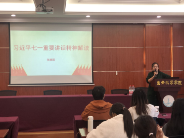 为进一步加强积极分子的学习教育,深入理解习近平七一重要讲话精神,11月17日中午,科学教育员工党支部邀请了生物学教师党支部书记张慧娟老师为科学教育专业员工党支部2021年党章学习小组学员作《习近平七一重要讲话精神解读》专题讲座,全体党章学习小组学员参加。