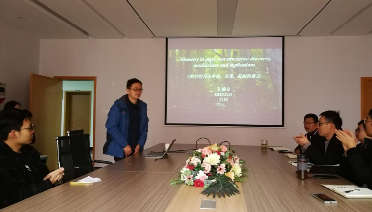 孔德良教授的学术报告深入浅出、诙谐幽默。他首先介绍了他们首次在陆地植物中发现的吸收根两个关键结构存在“异速关系”的现象,即随着吸收根直径的增加,根内的皮层厚度的增速远超过中柱半径的增速,在此基础上提出了“养分平衡理论”和“碳平衡理论”来解释这种异速关系的形成机制,并正在构建整合这两个机制的新的理论框架。其次,孔教授重点阐述了这种异速关系在根的进化,以及对“根经济学谱”这一根系研究范式的重要贡献。最后,孔教授介绍了其课题组未来着重关注的几个方面的研究。