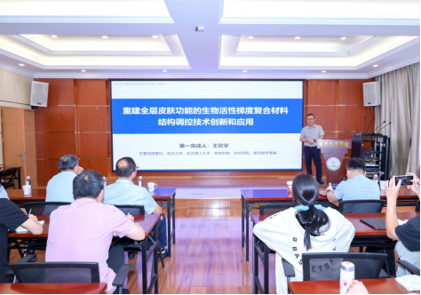 王欣宇教授介绍了全层皮肤功能的生物活性梯度复合材料的研究背景并针对目前全层皮肤修复材料不可吸收、生物活性不足、诱导再生能力差及动物源性胶原过敏反应风险等临床医学难题作了相关报告。构建了全层皮肤修复梯度复合材料结构调控技术体系,发明了有机-无机复合微纳结构支架制备技术和材料,提高了全层皮肤修复材料的力学适配性和降解可控性,率先通过生命体/人工材料多体复合技术突破了干细胞及益生菌等生命体与支架材料的多体复合、高效递送以促进组织再生等前沿性技术应用瓶颈。