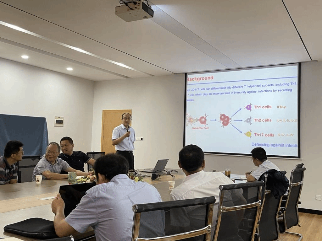 2021年6月28日,应K1体育邀请,中国农业科公司上海兽医研究所童光志研究员、黑龙江八一农垦大学崔玉东教授、黑龙江大学平文祥教授和李海英教授等4位专家来公司开展学术交流。
