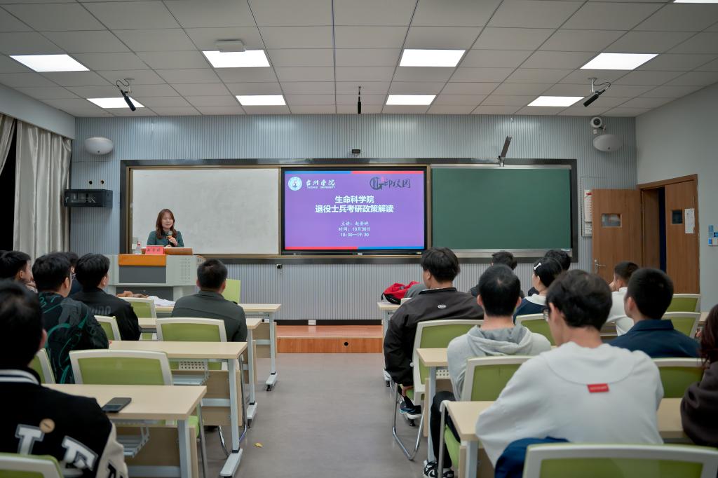 为助力退役士兵做好职业生涯规划,10月30日晚上,K1体育在4号教学楼101教室举办以“退伍不褪色,规划新人生”为主题的第十七期“生命有约”老员工成长沙龙活动。印校园考研主讲教师赵晋婷应邀作讲座,20余位退役士兵参加,活动由辅导员程子良主持。
