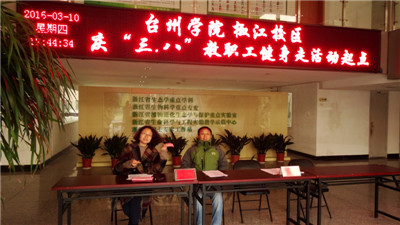 3月10日下午,校工会、校妇委会联合举办教职工庆“三•八”健身走活动,庆祝国际劳动妇女节106周年。活动分两校区同时进行,其中椒江校区活动由公司承办,行走路线为校园内K1体育大楼——田径运动场。 春寒料峭...