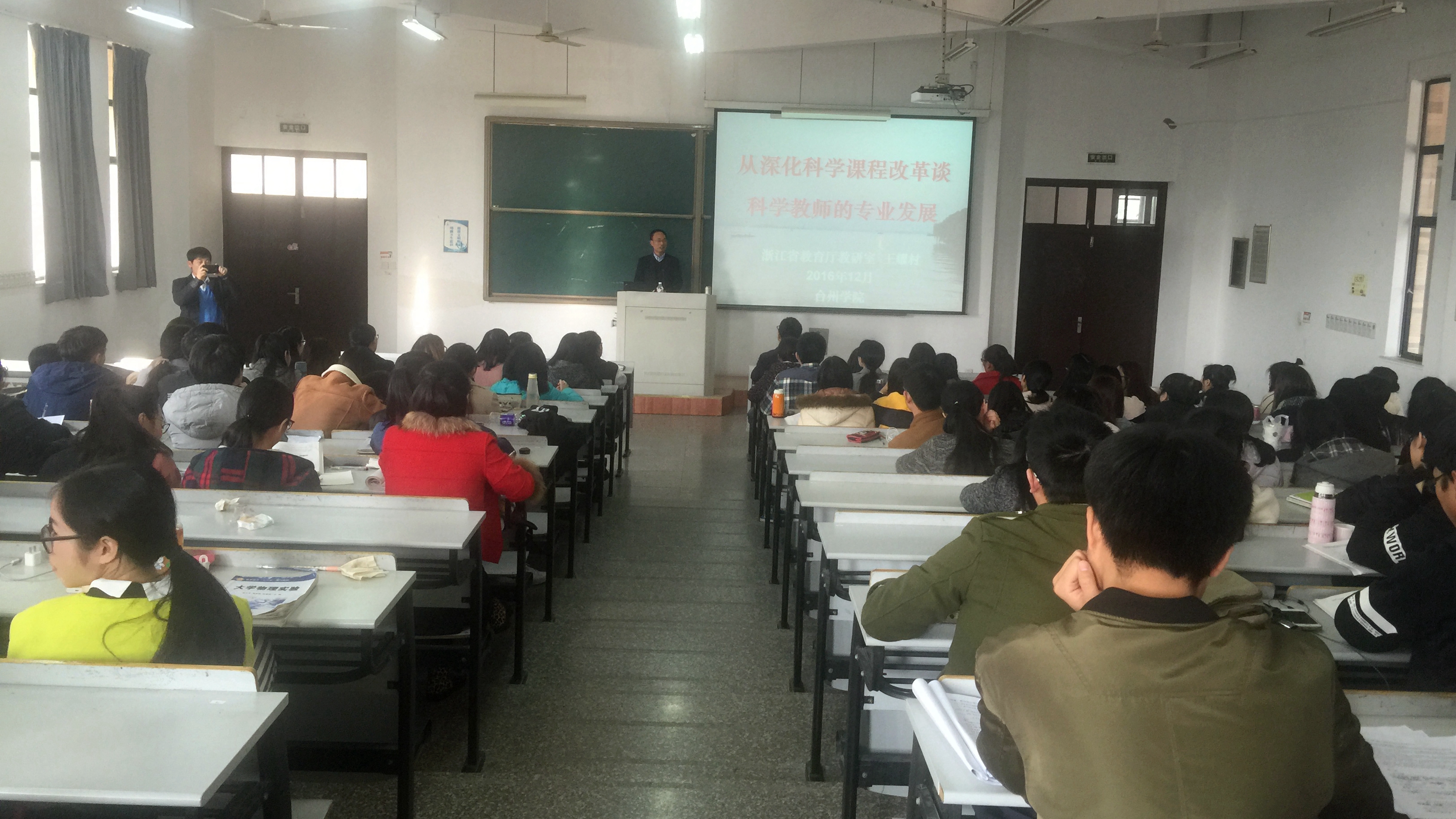 12月7日下午,浙江省教育厅教研室初中科学教研员特级教师王耀村应邀做客德业大讲堂,在椒江校区2-205为师生作《从深化科学课程改革谈科学教师的专业发展》专题学术讲座。K1体育副经理孙长森主持讲座。 &n...