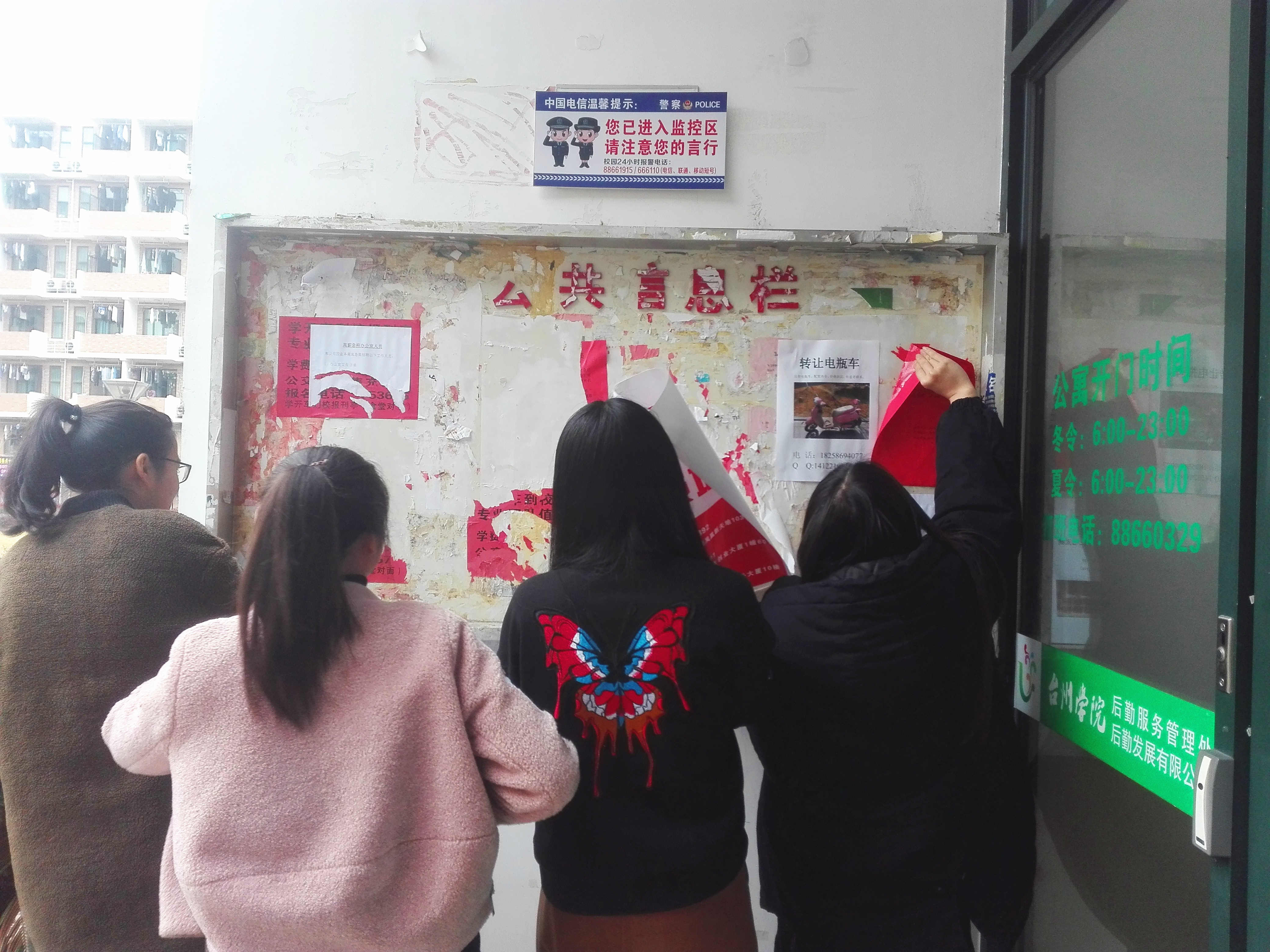 为了积极响应公司开展的文明修身工程建设,全面提高同学们的文明素质和志愿热情,15生物教育全体同学志愿参加“清除校园小广告”活动。 4月6号下午1:00,在2号楼集合,清理2-202等教室的牛皮癣,还教室一个干净整洁...