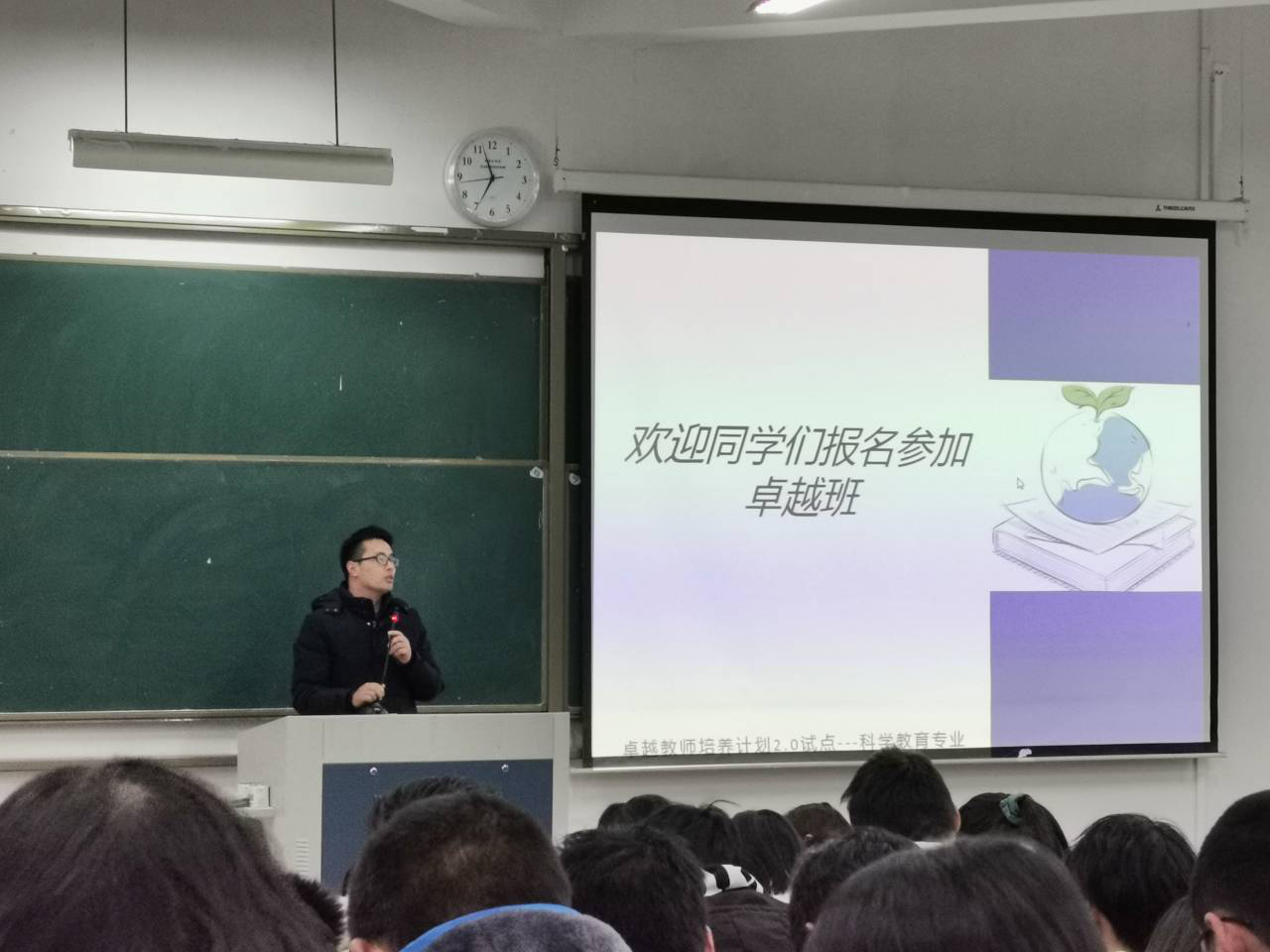 1月7日晚,生命公司在教学楼2303教室召开科学教育专业卓越教师改革2.0试点人才培养实施方案介绍会暨科学教育专业卓越班学员选拔(第一期)宣讲会。K1体育副经理蒋胜韬出席,科学教育专业负责人潘志祥主持会议。潘志祥就卓越教师培养改革的背景、指导思想、目标定位、改革举措、特色课程和实施办法等六方面对卓越教师培养计划2.0改革进行了全面的介绍;同时,对科学教育专业卓越教师班(第一期)学员选拔相关工作进行了说...