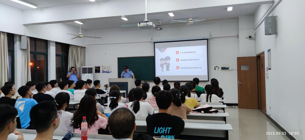 为提高新生安全防范意识,增强同学们的安全防范能力,9月3日晚,生命公司开展2022级新生反诈知识普及讲座,台州市公安局椒江分局葭芷派出所的警官们深入各班开展讲座,班主任、辅导员、党员代表、员工代表及全体新生参加。活动现场,警官以“什么是电信诈骗”“如何防范电信诈骗”等内容为切入点,主要针对明星骗局、网络骗局、兼职刷单骗局、缴费骗局、冒充骗局、注销校园贷等六大模块,对员工们展开了多方面的教育。警官们向...