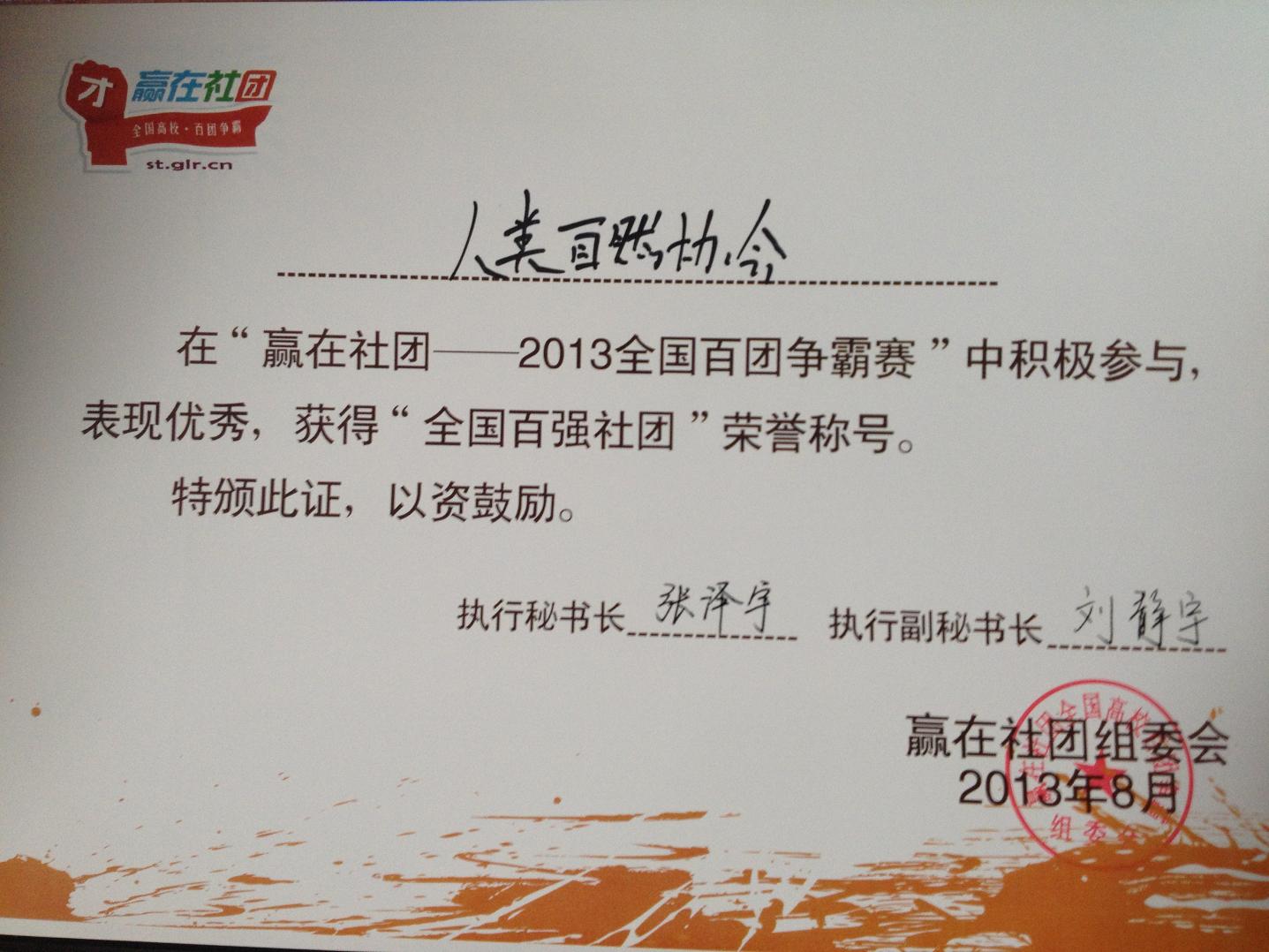 近日,由国际老员工职业发展联盟(Career Insider Club)“赢在社团”组委会主办,北京大学就业创业辅导中心承办的“赢在社团,2013全国高校百团争霸赛”评选活动结果揭晓。K1体育人类自然协会不负众望...